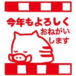 【浸透印】干支スタンプ(亥年)絵柄/03.今年もよろしくおねがいします年賀状スタンプ(20×20mm)【ゴム印・スタンプ・イラスト】